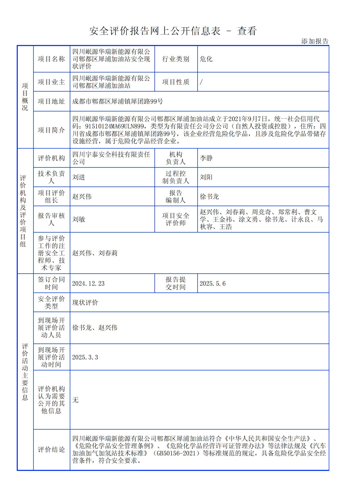四川岷源华瑞新能源有限公司郫都区犀浦加油站安全现状评价报告